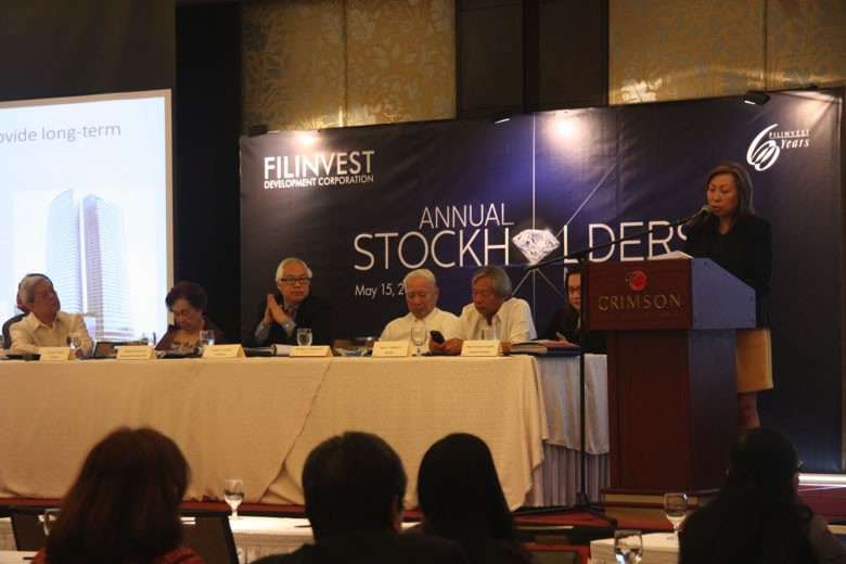 Filinvest Development Corporation held its Annual Stockholders’ Meeting earlier at Crimson Hotel, Alabang. The President’s Report was presented by Josephine Gotianun Yap – Director and President/CEO (standing). The Board of Directors include (from L-R): Val Antonio B. Suarez – Independent Director, Jesus N. Alcordo – Director, Mercedes T. Gotianun – Director, Jonathan Gotianun – Chairman, Andrew L. Gotianun, Sr – Chairman Emeritus, Andrew T. Gotianun, Jr – Director, Elma Christina R. Leogrado – Corporate Secretary. Not in photo: Lamberto U. Ocampo – Independent Director.