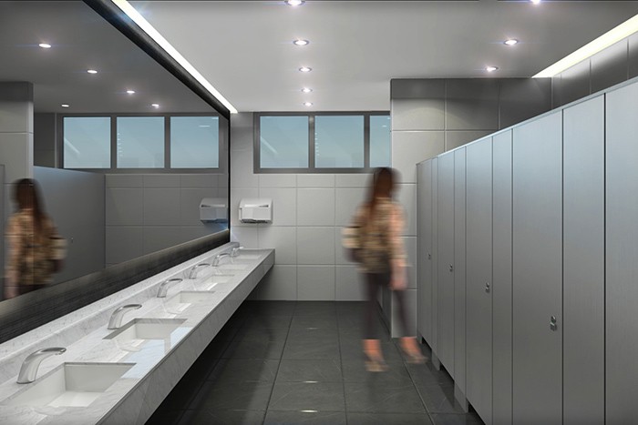 - Ceiling: Exposed concrete soffit with one coat finish, fire sprinkler system, FCU